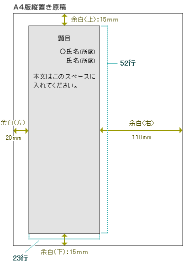 - 原稿の余白は上15mm、下15mm、左20mm、右110mmです。